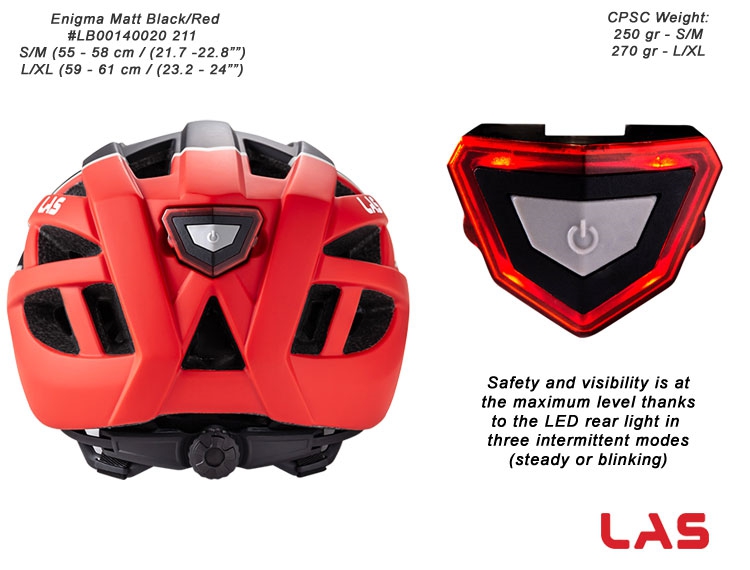 Enigma MTB is the 2 in 1 helmet suitable for every cyclist that faces terrain with different characteristics. Safety and visibility is at the maximum level thanks to the LED rear light in three intermittent modes.